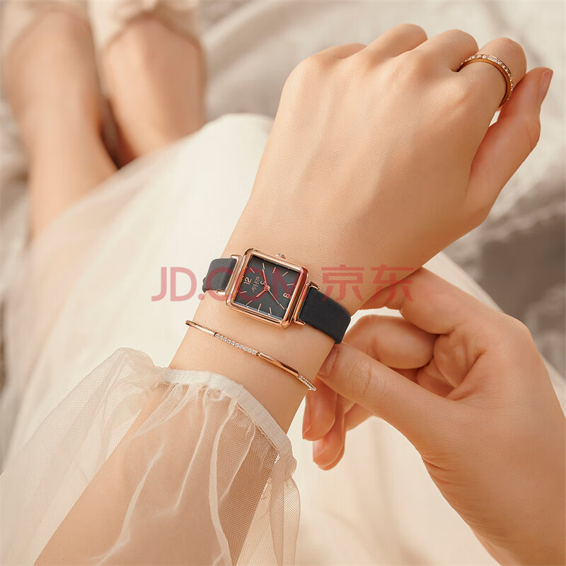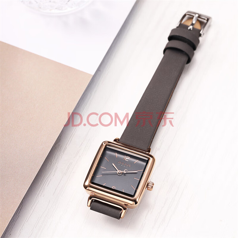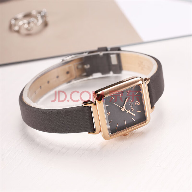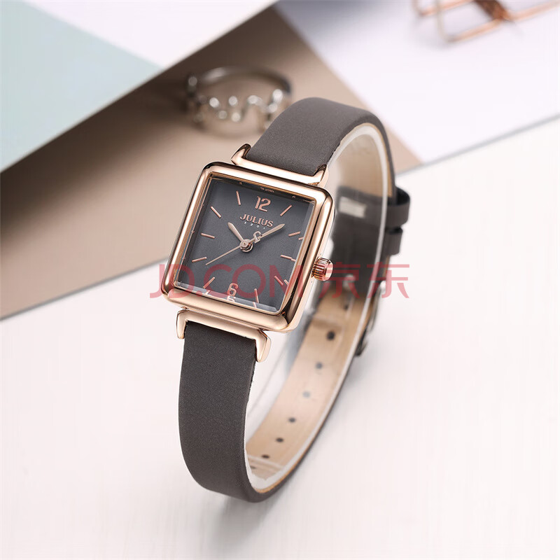 商品相册:聚利时(Julius)手表女简约时尚韩风小方表气质女表石英学生手表黑灰色JA-1305D第