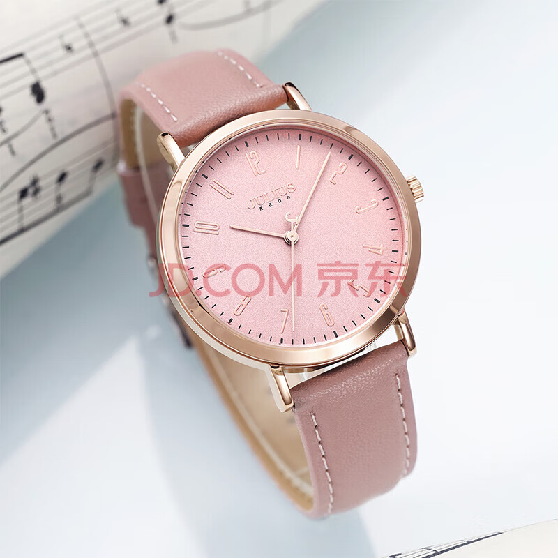 商品相册:聚利时(Julius)手表女时尚韩版学生女生休闲大表盘石英防水女士手表粉色JA-1017D第