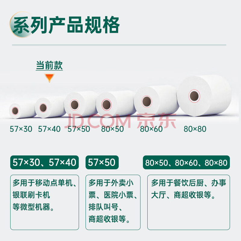 商品相册:得力(deli)57*40型12米*32卷 珊瑚海热敏收银纸 京东美团外卖超市小票纸 ZS103【适配58mm机器 5801P等】第