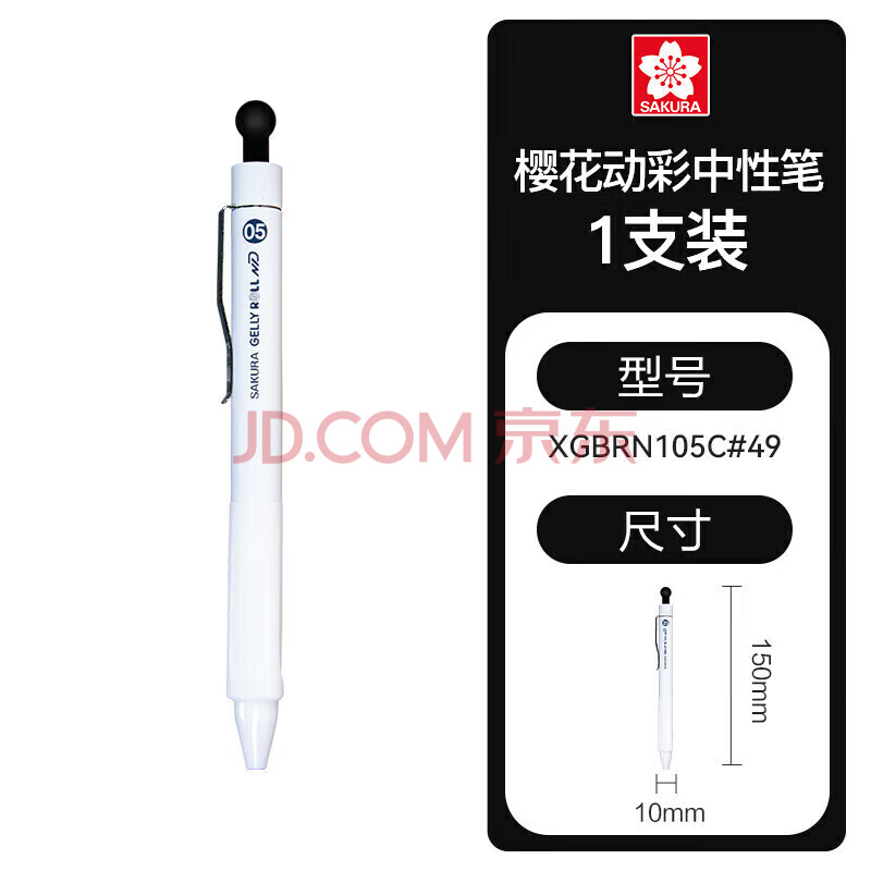 商品相册:樱花(SAKURA)按动式针头中性笔0.5黑色办公签字笔学生考试水笔水性笔耐光耐水耐热动彩笔第