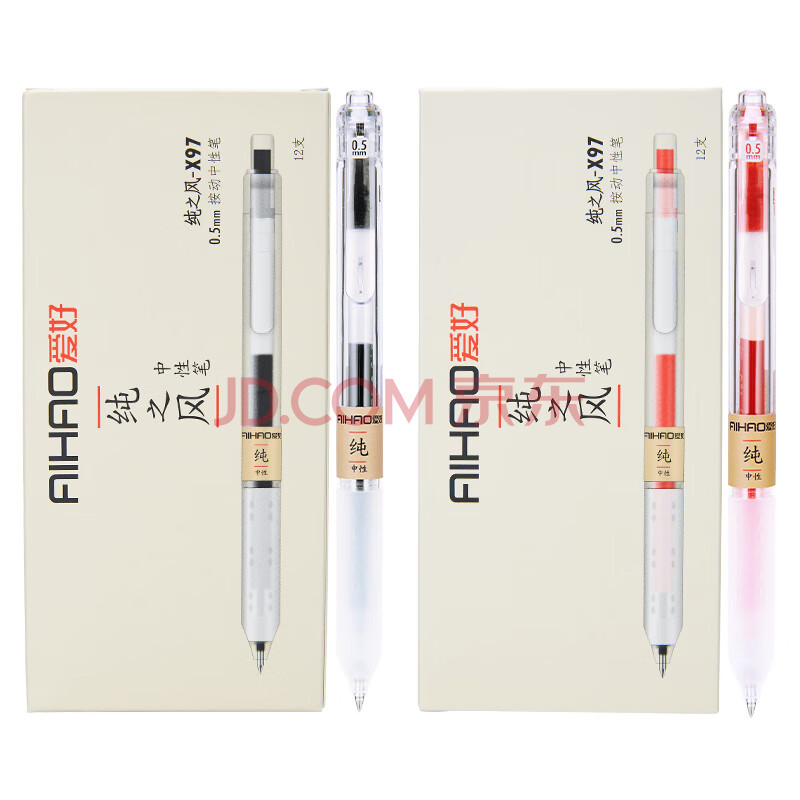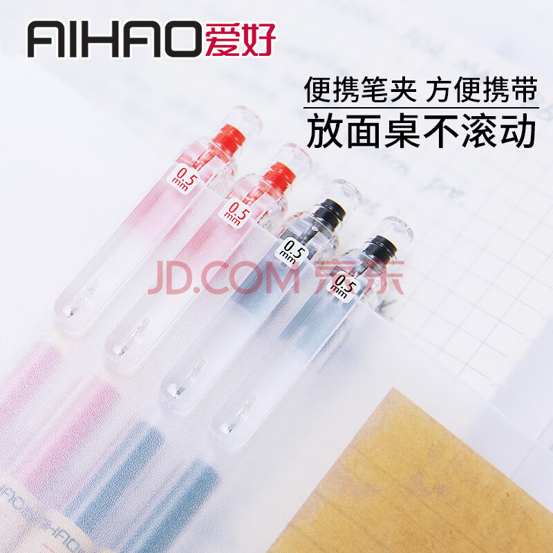 商品相册:爱好(AIHAO)【开学必备】按动中性笔0.5mm子弹头大容量速干商务办公签字笔红色12支 x97第