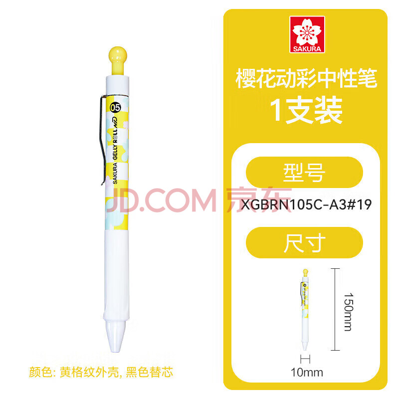 商品相册:樱花(SAKURA)动彩按动式针头中性笔0.5mm办公签字笔学生考试水笔水性笔耐光耐水耐热动彩笔-黄格杆格纹系列第