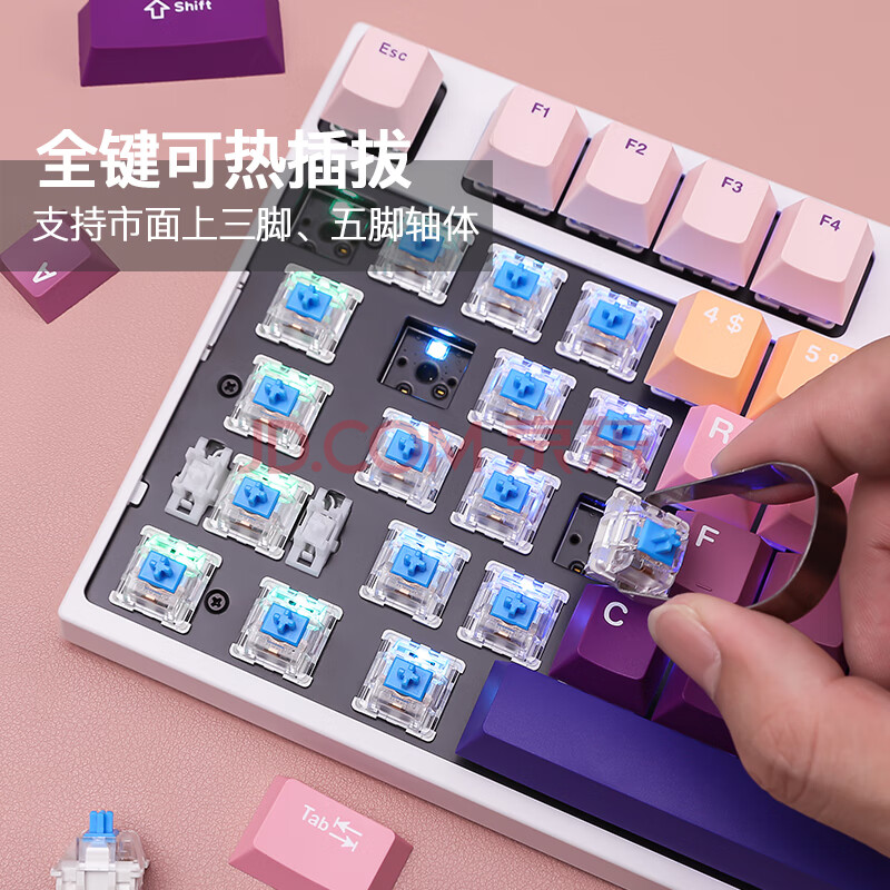 商品相册:迪摩(DEARMO)F87机械键盘三模热插拔客制化键盘RGB背光游戏键盘笔记本电脑办公键盘 渐变紫 红轴第