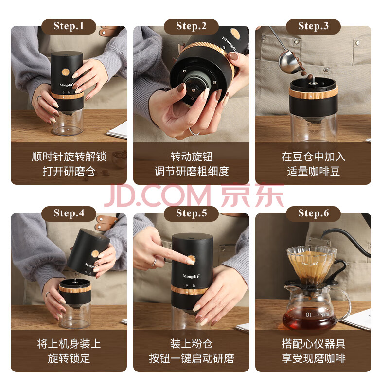 商品相册:Mongdio电动磨豆机咖啡研磨机咖啡机研磨一体机咖啡磨豆机电动第