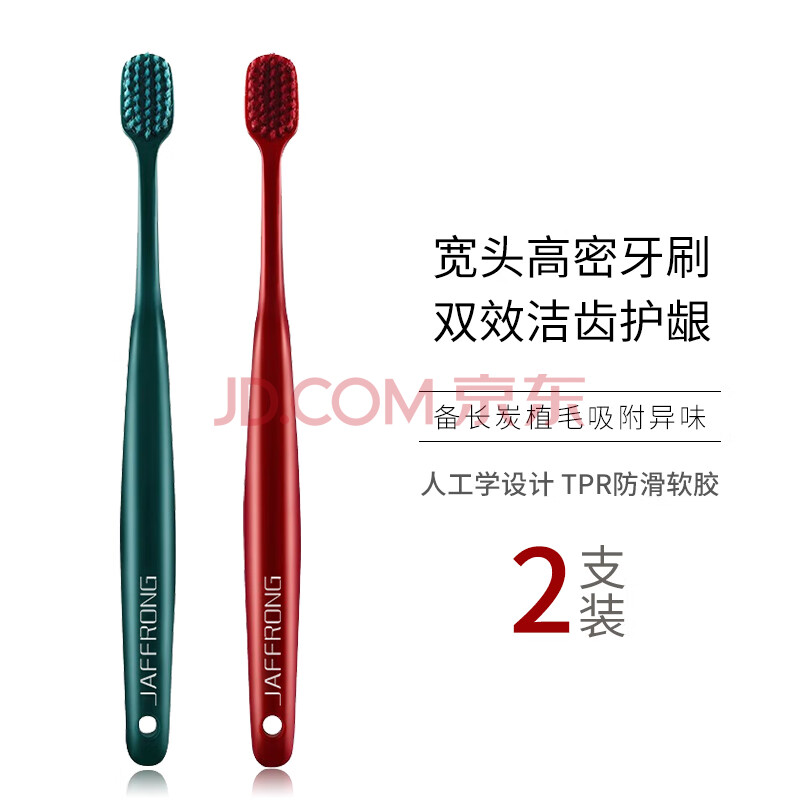 商品相册:洁芙朗(JAFFRONG)宽头牙刷情侣款 深层清洁护龈纤细软毛口腔护理牙刷男女2支装第