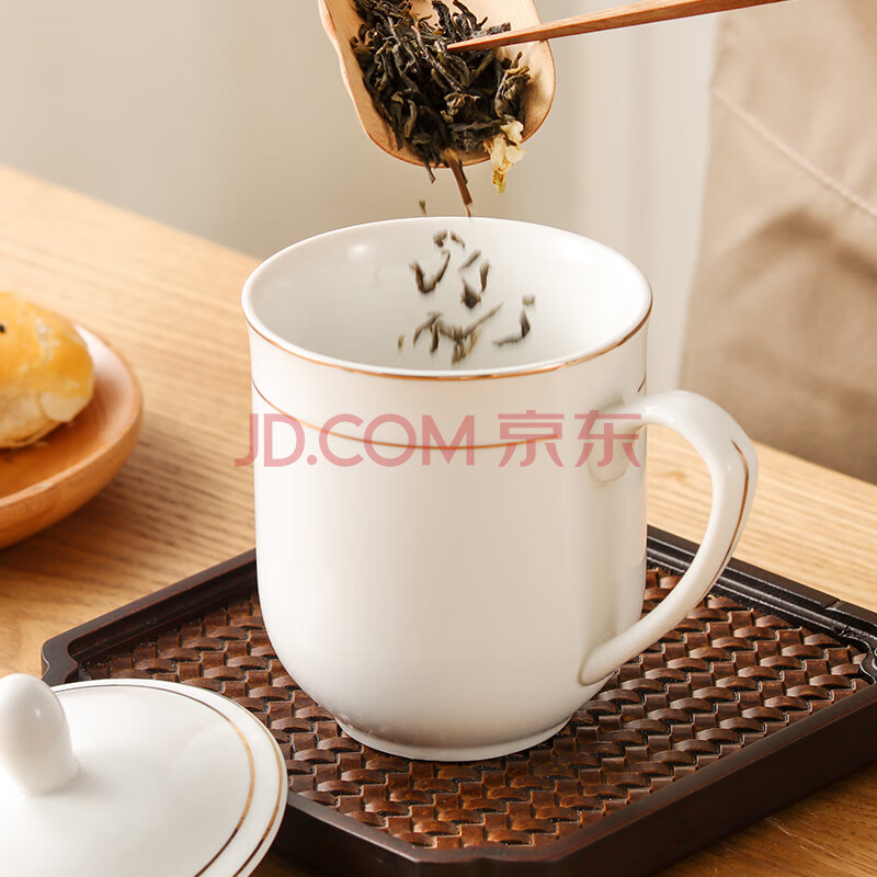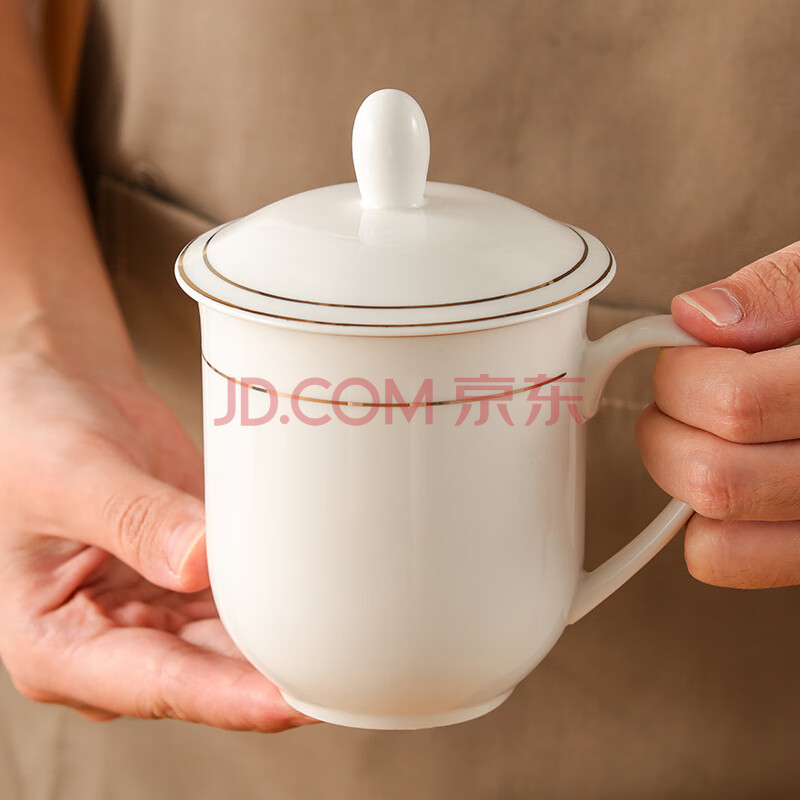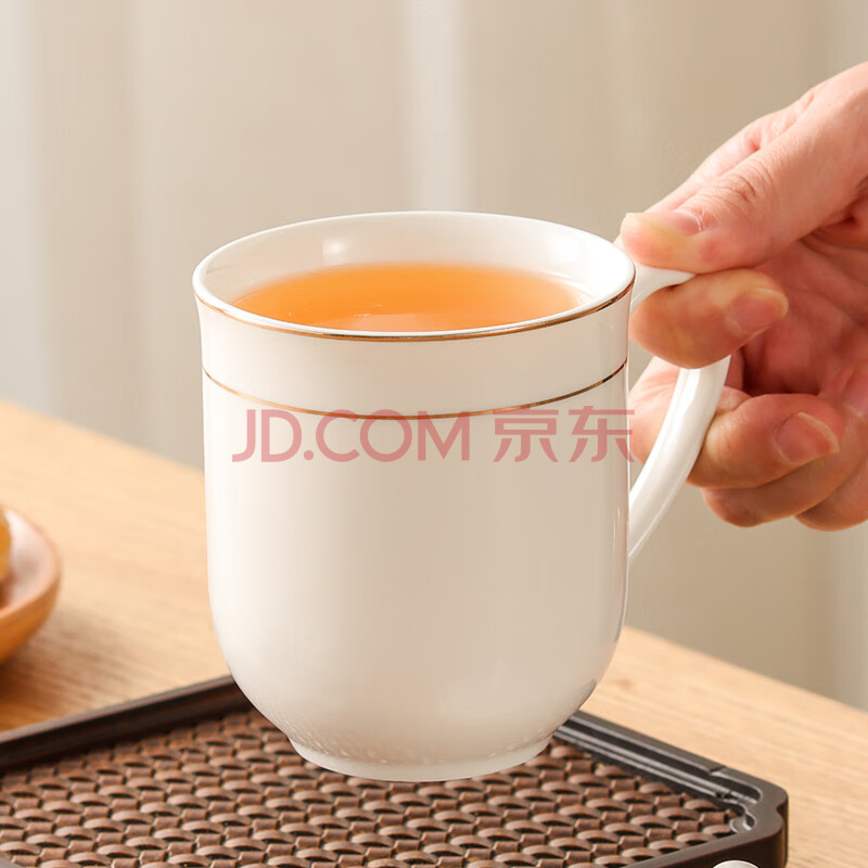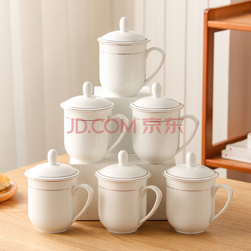 商品相册:洁雅杰陶瓷茶杯 带盖水杯子(350ml)陶瓷茶杯陶瓷办公杯 6只装 贵族杯第