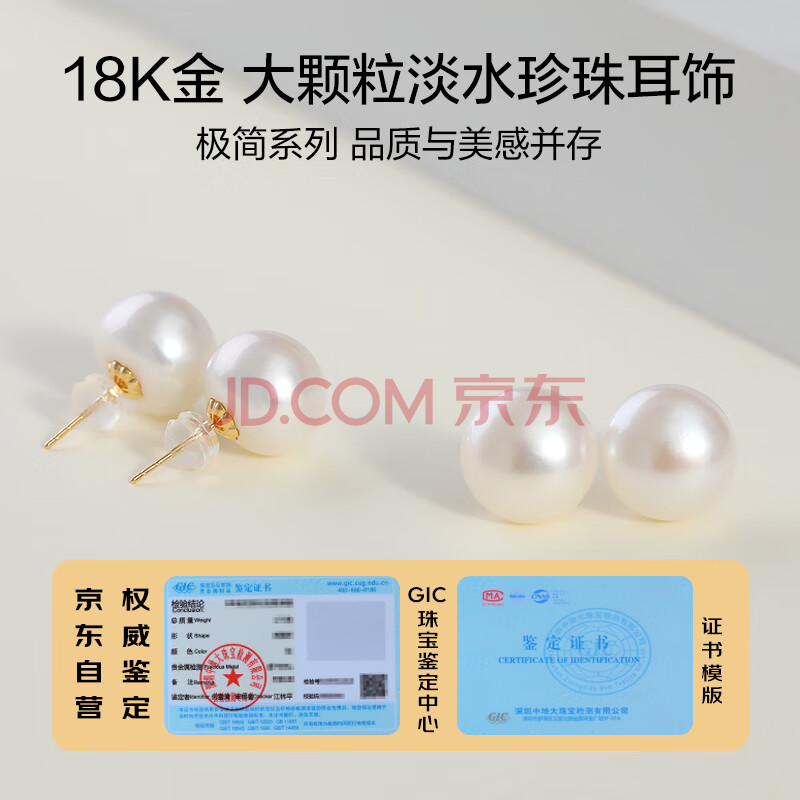 商品相册:黛米18K金无核馒头圆10-11mm大颗粒淡水珍珠耳钉母亲节礼物送老婆第
