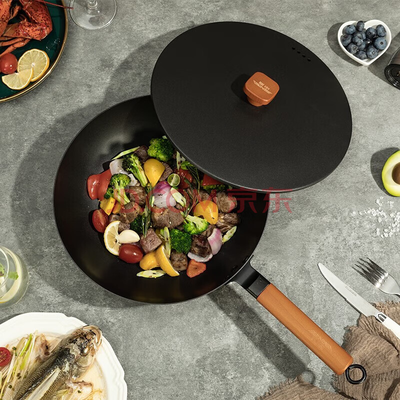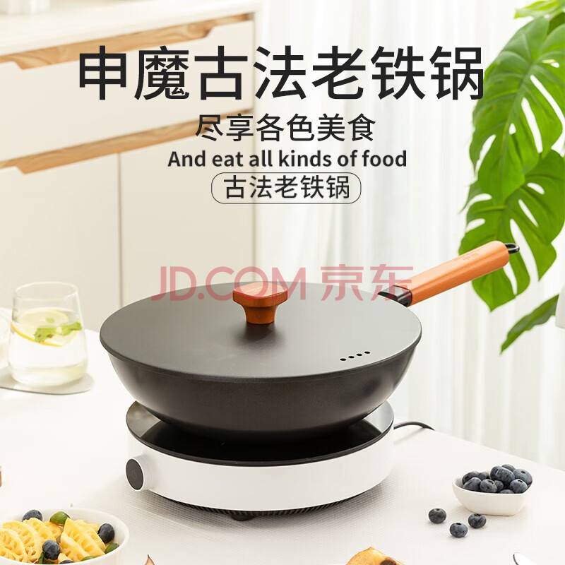 商品相册:申魔 古法爆炒铁锅炒菜锅 煎锅少油烟精铁 燃气煤气灶电磁炉通用 古法铁锅SC20K21第