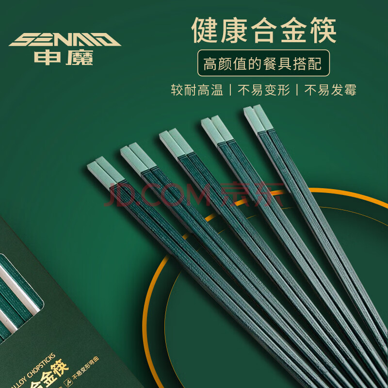 商品相册:申魔 家用合金筷子十双装耐高温不锈不发霉防滑健康筷 合金筷10双装SC22K07第