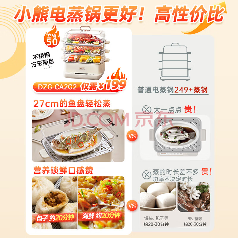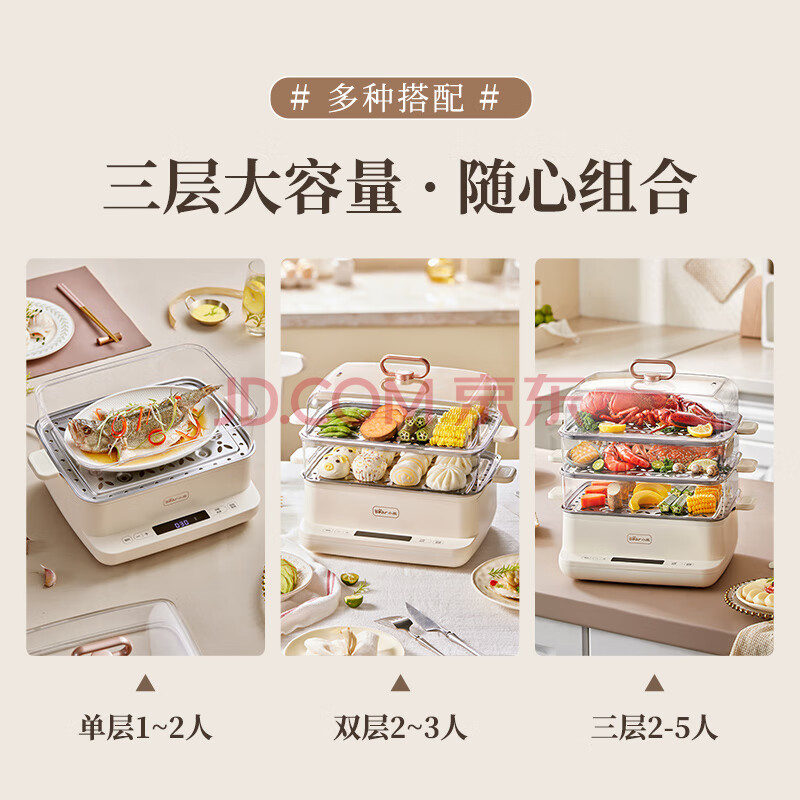 商品相册:小熊(Bear)电蒸锅 不锈钢 家用多层大容量可视蒸箱 蒸鱼馒头包子14.7L一体多功能电锅 DZG-CA2G2第