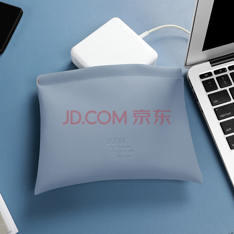 商品相册:必优美 数码便携式自动闭合紧口收纳包电源充电器无线鼠标移动硬盘U盘保护套 BM01241008雾霾蓝第