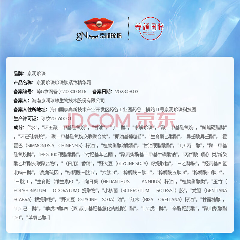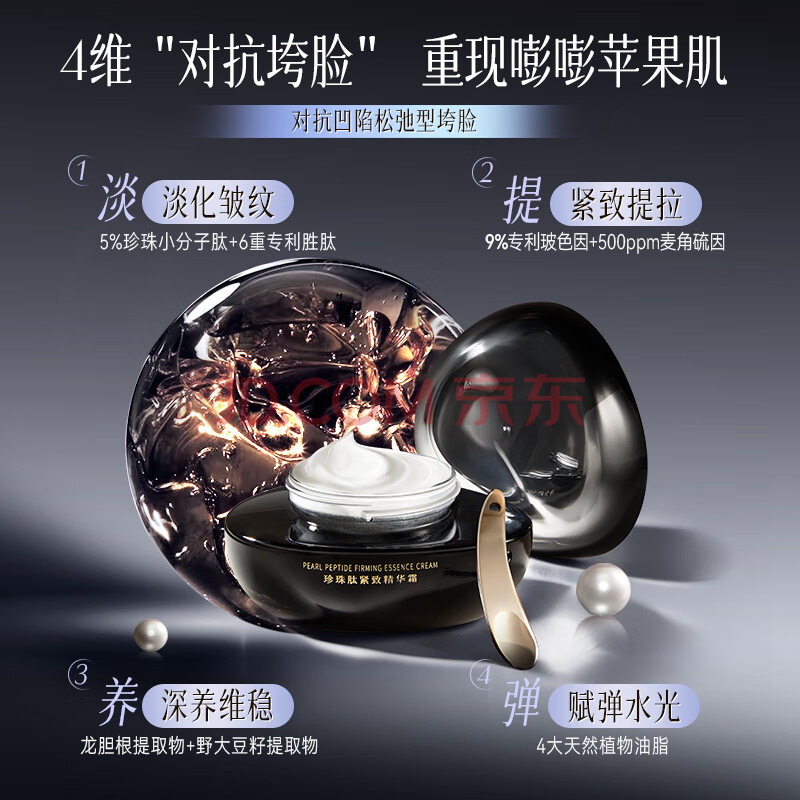 商品相册:京润珍珠珍珠肽紧致精华霜抗衰淡纹修护面霜膏霜珍珠膏护肤品女50g第