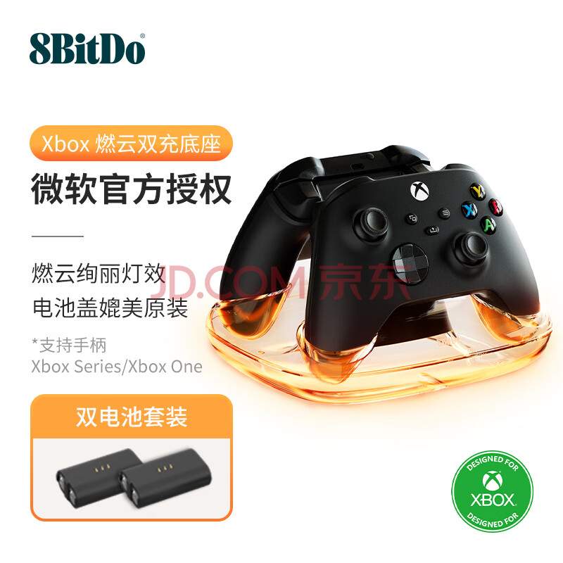 商品相册:八位堂 8BitDo 燃云双充底座 曜石黑 微软授权Xbox Series手柄电池Xbox One X/S充电底座充电器第