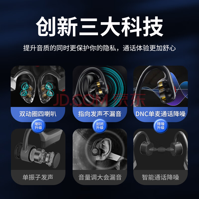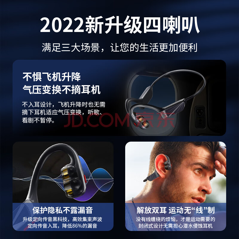 商品相册:OKSJ【四喇叭】蓝牙耳机骨传导升级气传导华为无线挂脖式运动跑步 颈挂式骑行超长续航适用小米苹果安卓音乐第