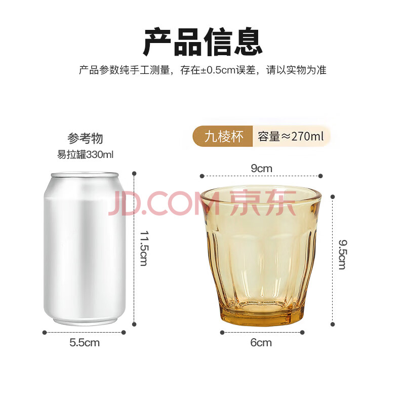 商品相册:美厨(maxcook)高硼硅玻璃水杯 家用水杯茶杯酒杯 可微波杯子2只装270ml MCB3171第