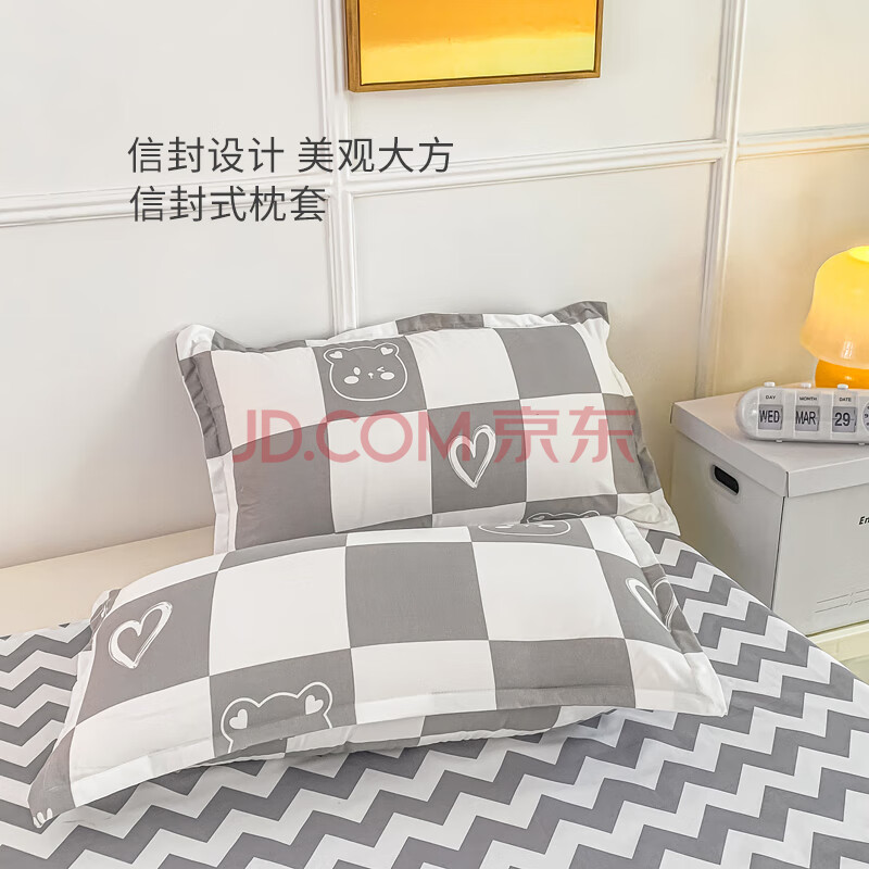 商品相册:艾薇 A类水洗棉单人床宿舍三件套床单磨毛被罩 灰格熊 被套150*200cm第