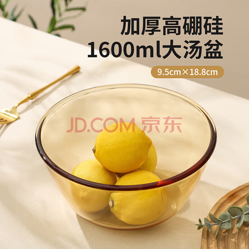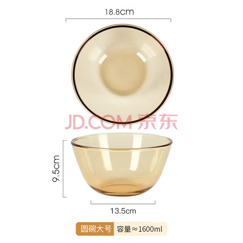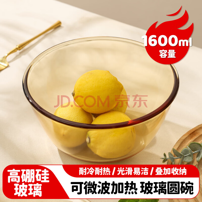 商品相册:美厨(MAXCOOK)高硼硅玻璃碗 耐热玻璃沙拉水果汤碗泡面碗1600ml琥珀色 MCWA3201第