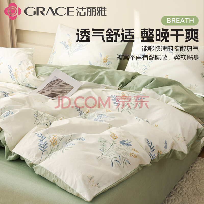 商品相册:洁丽雅(Grace)7A抗菌纯棉四件套A类亲肤小清新双人套件组合 爱莲娜 被套2*2.3M第