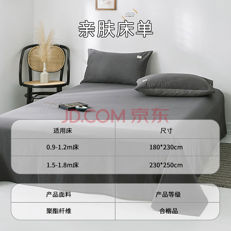 商品相册:艾薇 床单单件 被单床罩单件双人被单A类磨毛床单 极速灰 230*250cm第