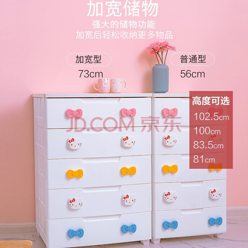 商品相册:爱丽思收纳柜床头抽屉式简易衣柜储物柜加厚五斗柜KITTY玩具收纳储物柜第