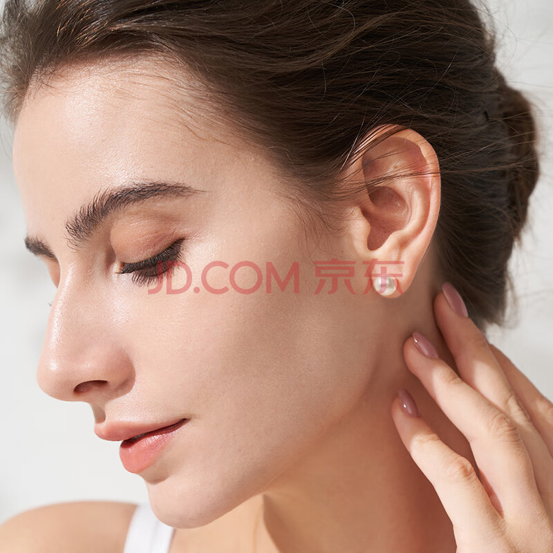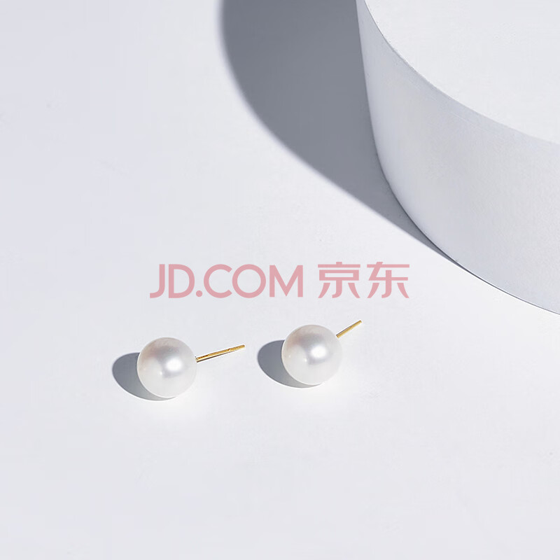 商品相册:大溪地18K金淡水珍珠耳钉 9-10mm强光白色珍珠耳饰节日礼物送女生第1张/共8