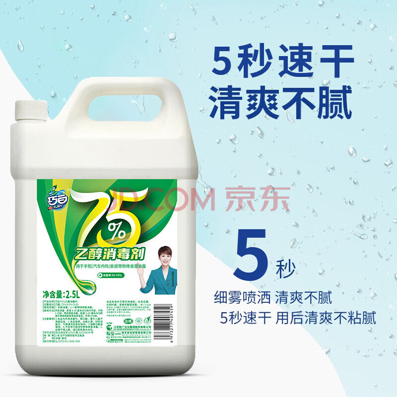 商品相册:巧白(JOBY)75%酒精喷雾 桶装大容量 酒精消毒液 2.5L/1桶装 LY第