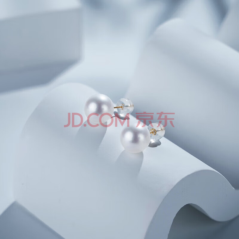 商品相册:大溪地18K金淡水珍珠耳钉 7-8mm强光白色珍珠耳饰节日礼物送女生第