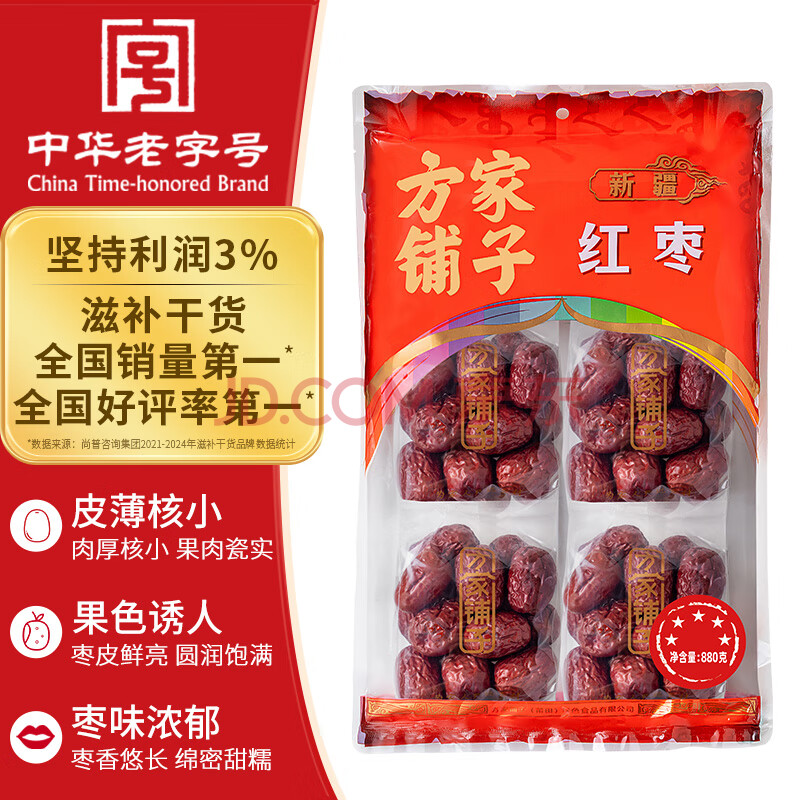 商品相册:方家铺子中华老字号 特级新疆红枣880g(110g×8)独立包装煲汤煮粥零食第