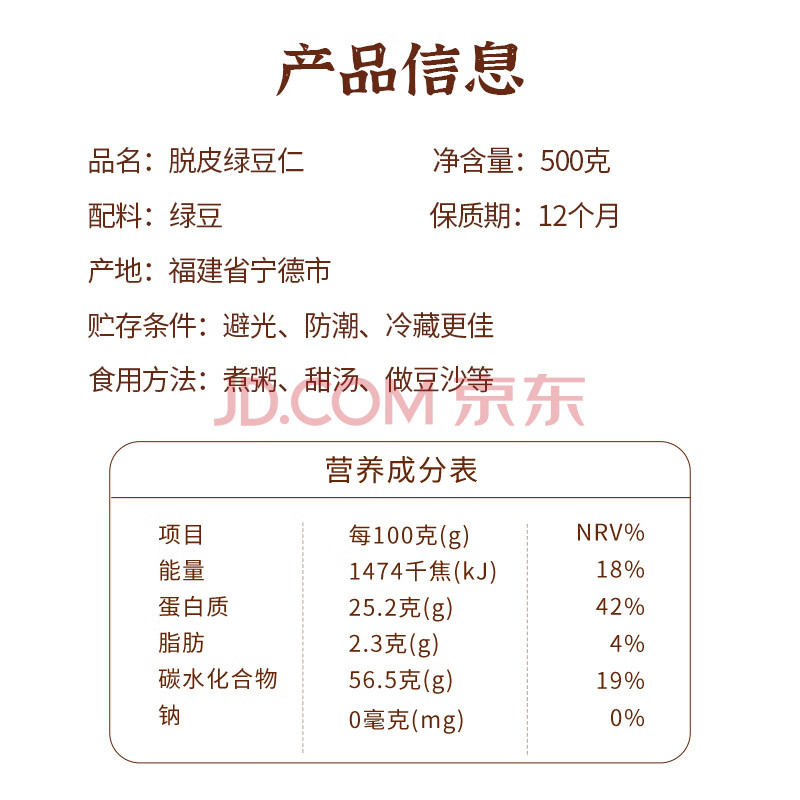 商品相册:鲜窝窝 脱皮绿豆仁500g 去皮无皮绿豆糕绿豆沙绿豆汤粽子月饼馅烘焙原料第