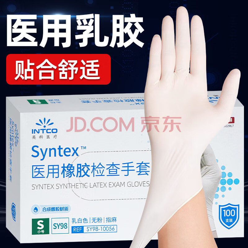 商品相册:英科医疗(INTCO)一次性手套乳胶手套100只小码清洁家务手套乳白色橡胶检查手套第