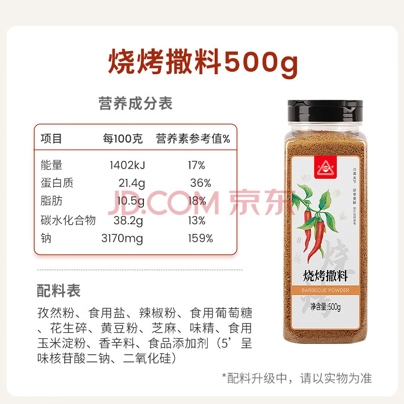 商品相册:川珍 烧烤撒料500g烧烤料孜然粉辣椒面白芝麻商用调料烧烤串撒料第