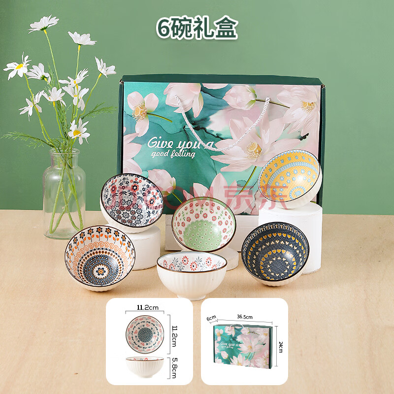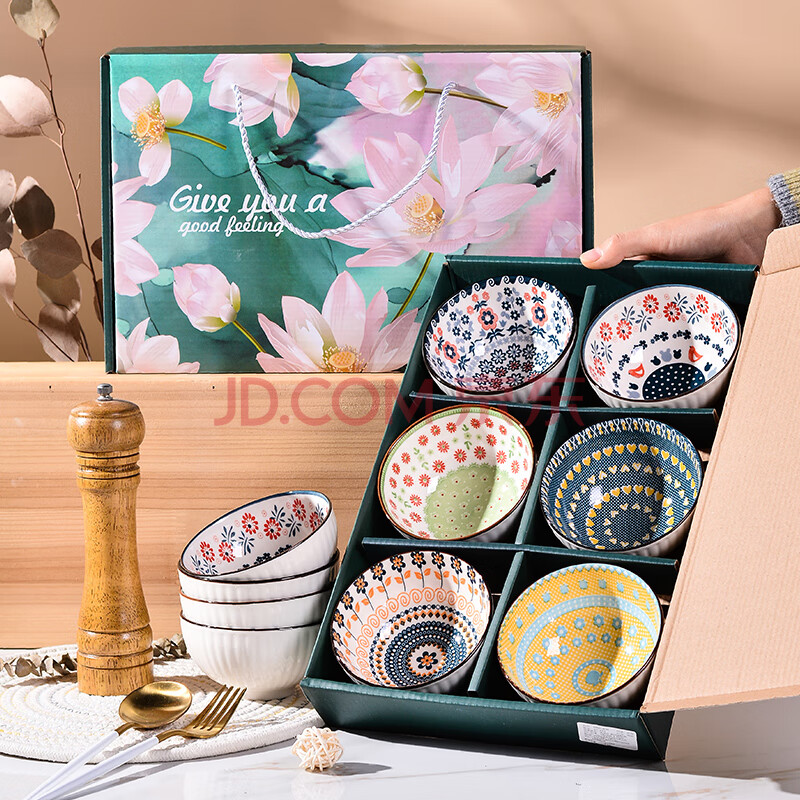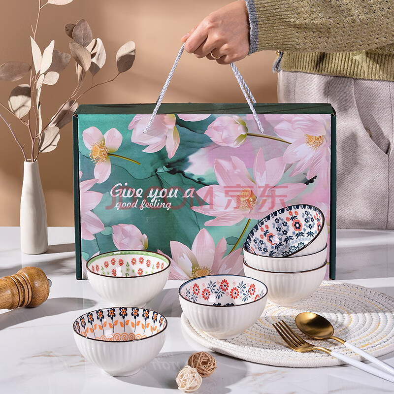 商品相册:迪普尔 陶瓷碗套装家用中式釉下彩陶瓷米饭碗6只礼盒装年会礼品送礼第