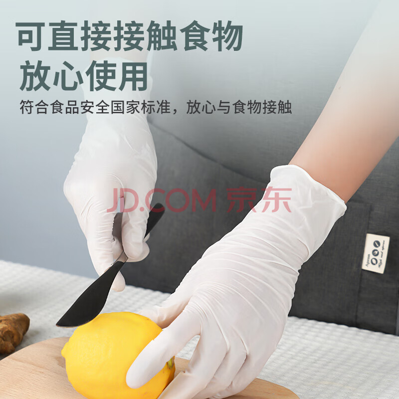 商品相册:英科医疗(INTCO)一次性手套丁腈手套100只中码食品级餐饮耐用丁晴白色橡胶手套第