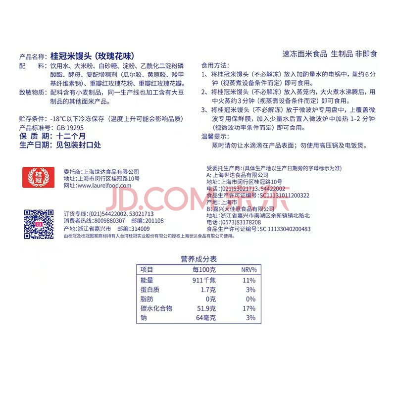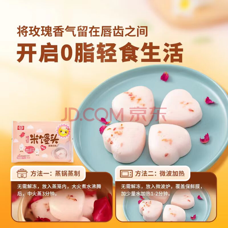商品相册:桂冠 米馒头 玫瑰花味 500g 20粒装 米糕早茶点心 儿童早餐半成品包子第