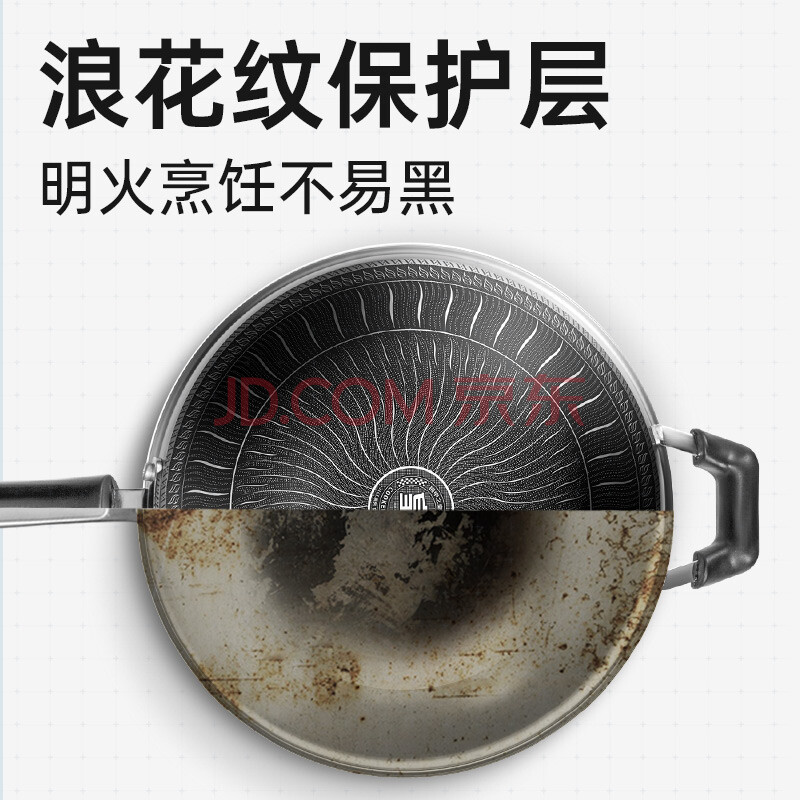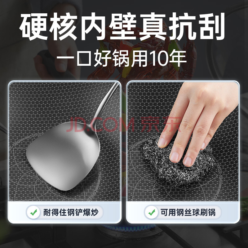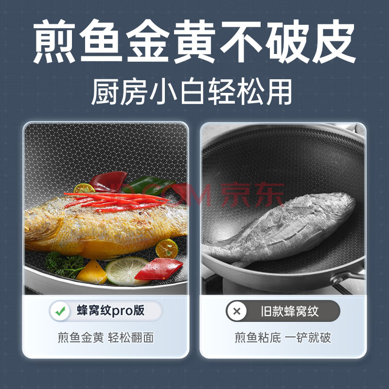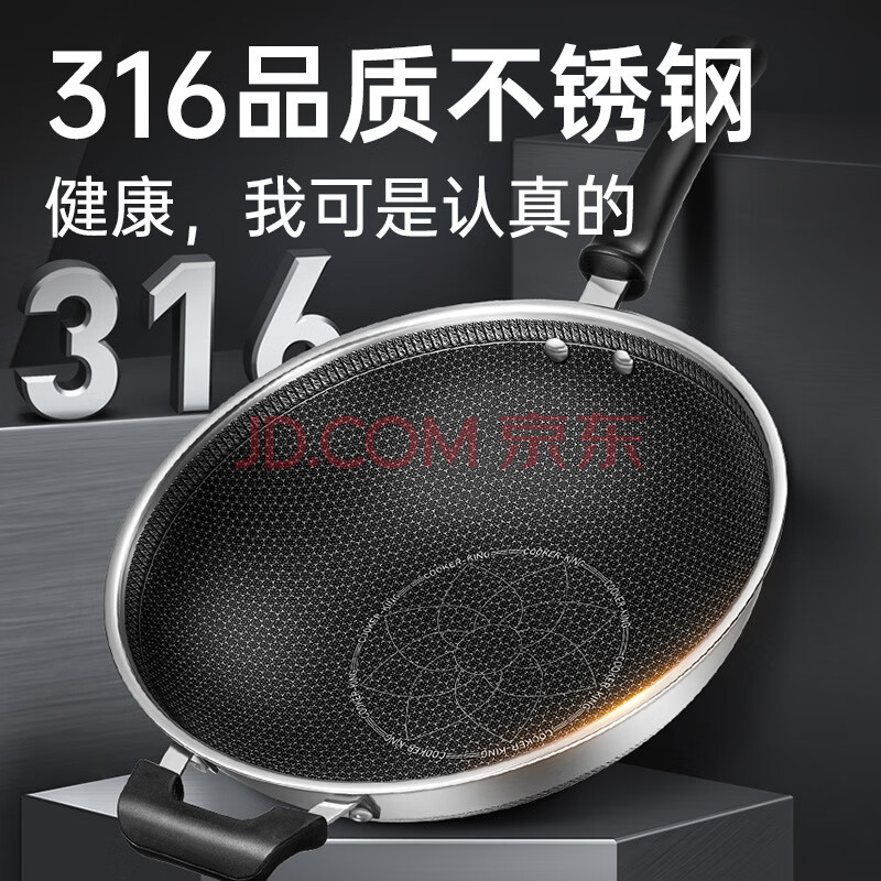 商品相册:炊大皇 炒锅 316不锈钢炒菜锅双面蜂窝纹不粘炒锅34cm 可立盖电磁炉可用第1张/共8