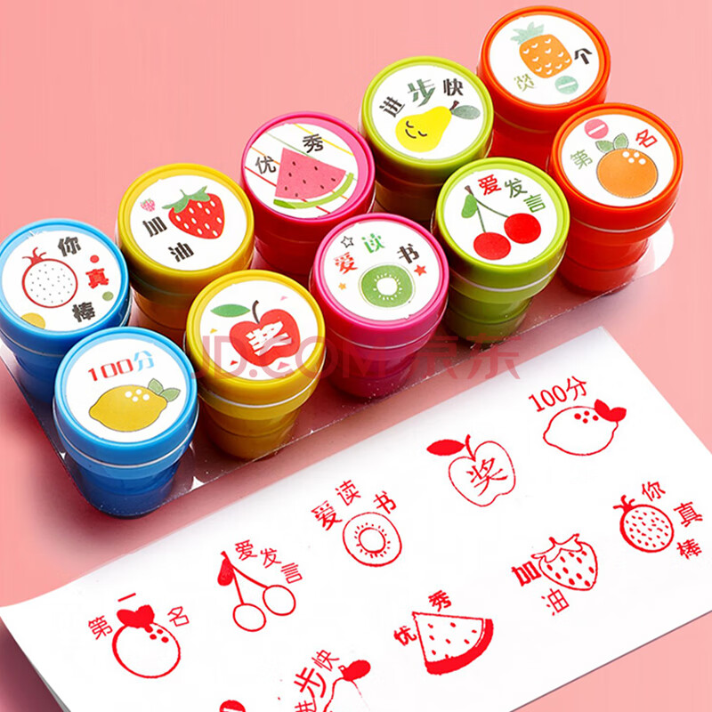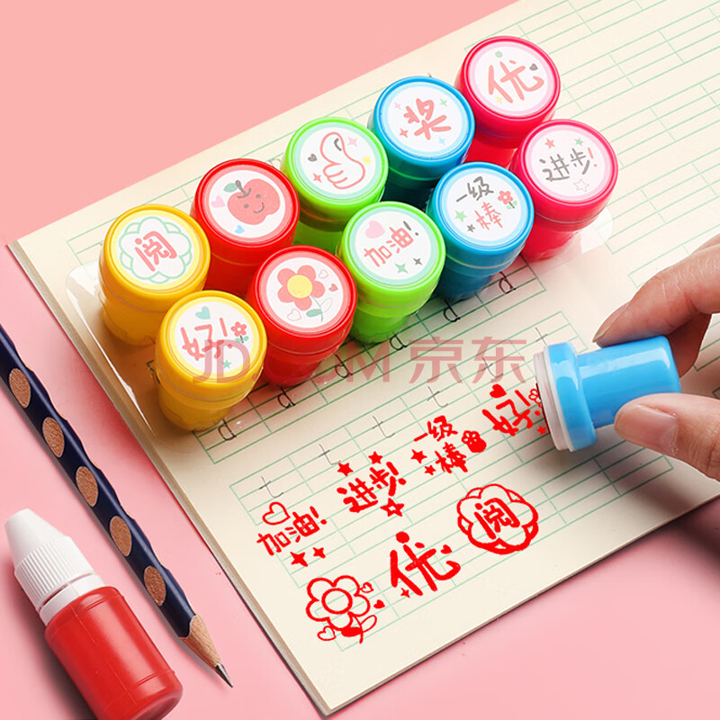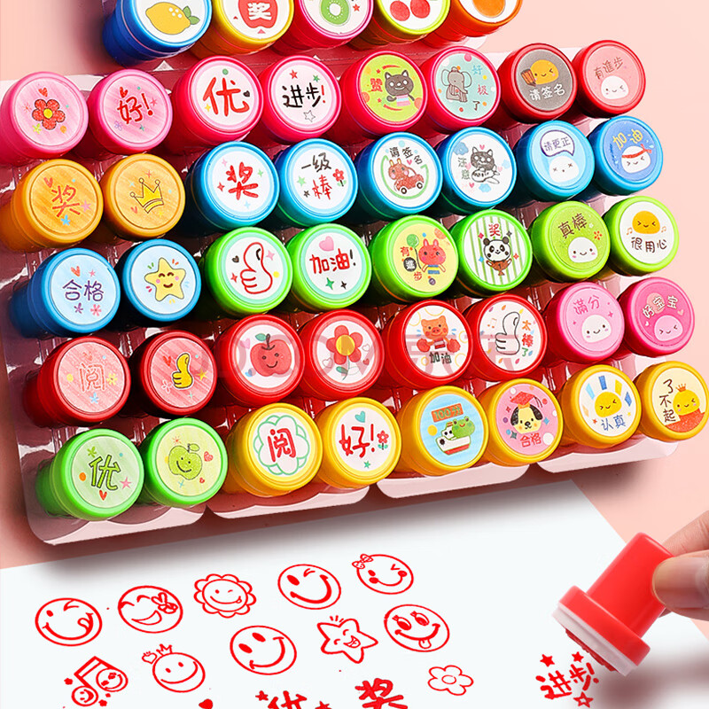 商品相册:誉禾儿童奖励印章老师评语鼓励盖章卡通可爱表扬点赞幼儿园教师批改作业图章20个加2支印油 6150-X第
