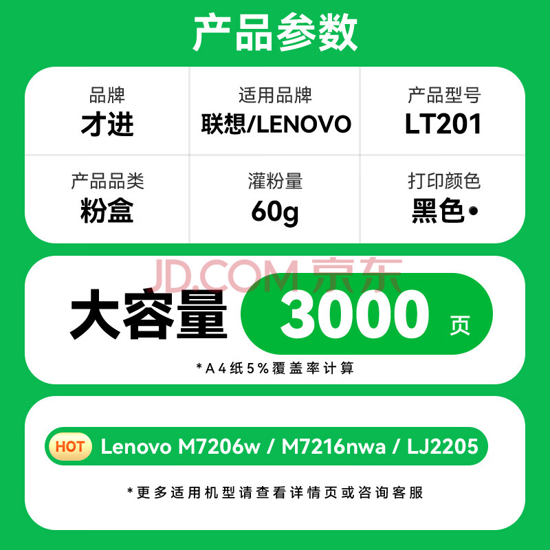 商品相册:才进适用联想m7206硒鼓lt201粉盒m7216nwa打印机m7206w墨盒s1801 m7256whf复印一体lj2205墨粉m1851碳粉m1840第