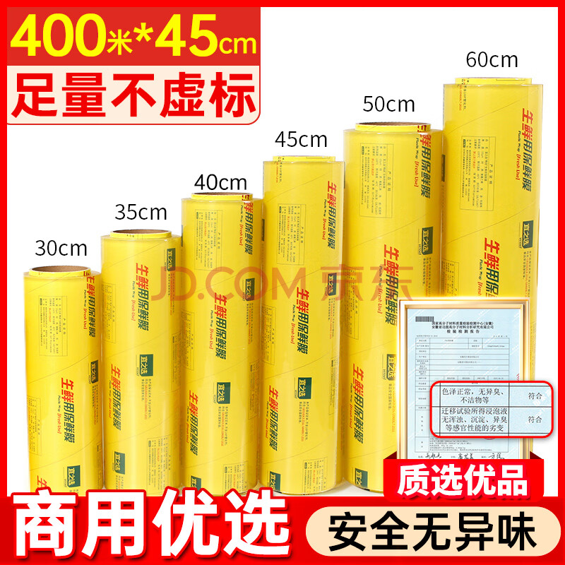 商品相册:宜之选PVC保鲜膜超大卷商用一次性45cm*400米生鲜食品蔬果搬家打包膜第