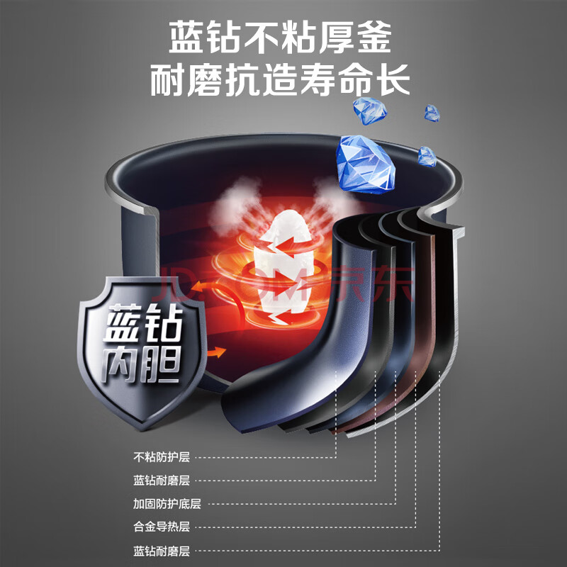 商品相册:苏泊尔(SUPOR)ZMD安心系列 蓝钻不粘厚釜 顶置触控面板 内盖一键可拆卸 9大功能 4L电饭煲SF40FC5071第