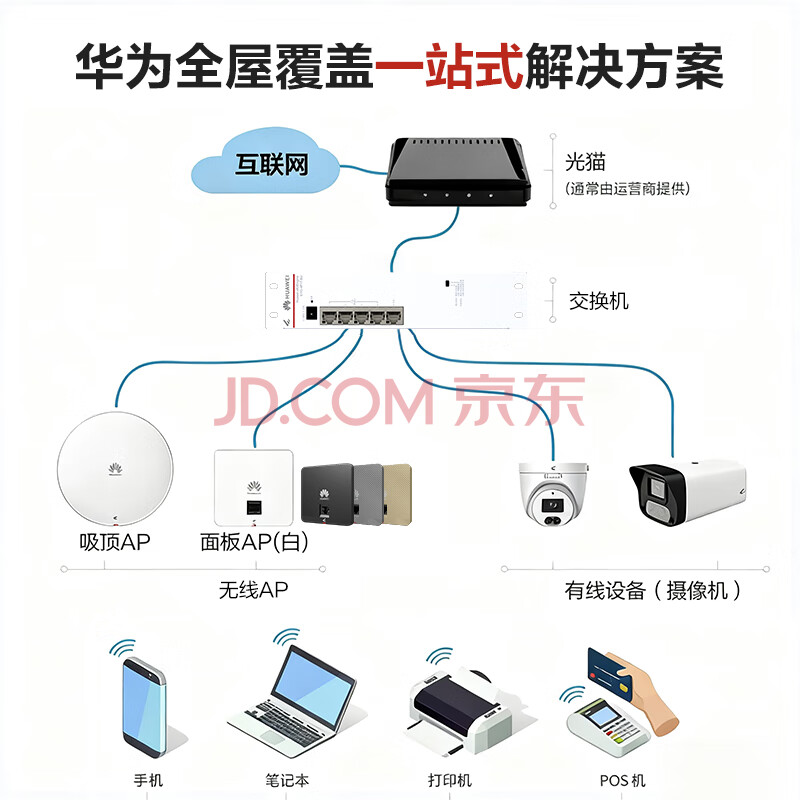 商品相册:华为全屋WiFi6套装2个AP162E双网口86AP面板+POE交换机 家用无线千兆一拖二路由器企业级AC+AP坤灵组网第