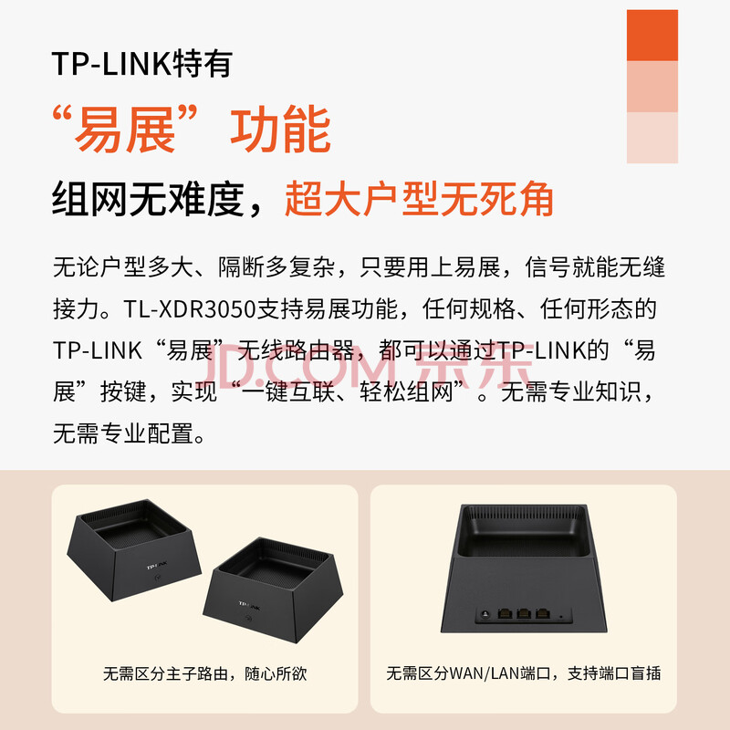 商品相册:普联(TP-LINK) AX3000满血WiFi6千兆无线路由器 5G双频游戏路由 易展Mesh 3000M无线速率XDR3050第