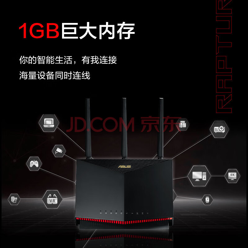 商品相册:华硕(ASUS)RT-AX86U双频5700M全千兆电竞路由无线路由器/一键性能加速/2.5G端口/WiFi6路由/PS5网络加速第