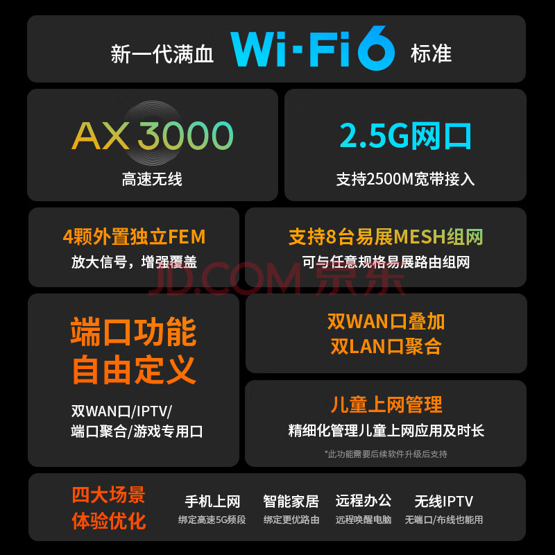 商品相册:普联(TP-LINK) AX3000满血WiFi6千兆双频无线路由器 游戏路由3000M无线速率 2.5G网口 XDR3040易展版第
