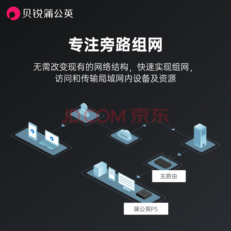 商品相册:贝锐蒲公英P5千兆旁路组网盒子硬盘变云盘nas智能远程云打印企业VPN智能异地组网局域网PoE供电内网穿透第