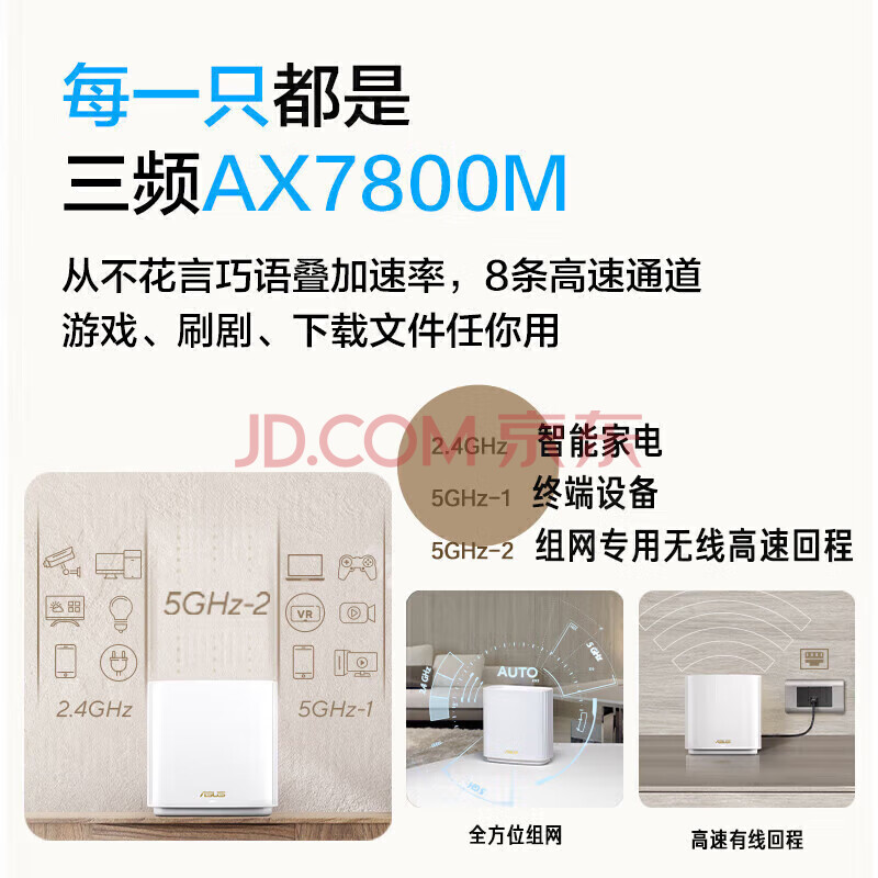 商品相册:华硕(ASUS)【焕新补贴】灵耀AX7800M分布式路由器/WiFi6无线三频路由器千兆/全屋覆盖/Aimesh随心组路由器第1张/共6