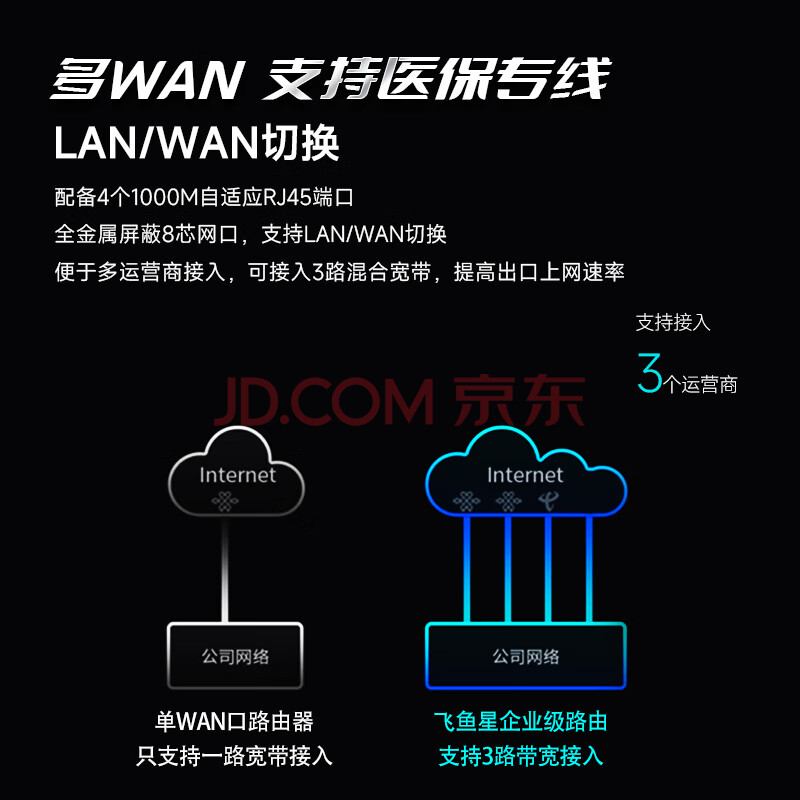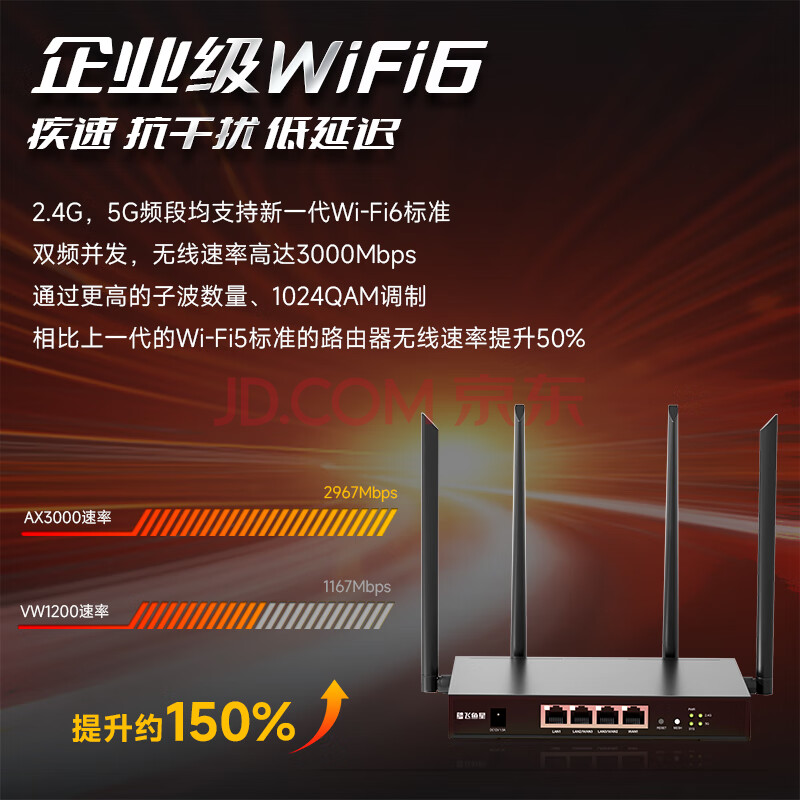 商品相册:飞鱼星5G双频千兆无线路由器3000M无线企业商用高速路由 wifi6穿墙精钢铁壳 多WAN支持医保专线AX1800第