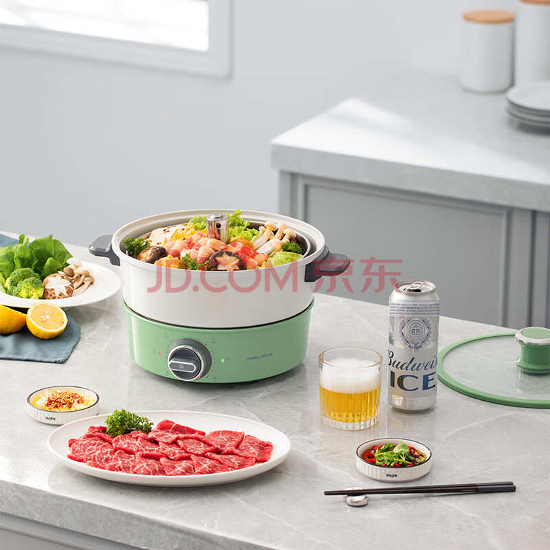 商品相册:摩飞电器(Morphyrichards)升降电火锅 家用多功能涮蒸炖煮一体料理锅 4升容量 MR9090第