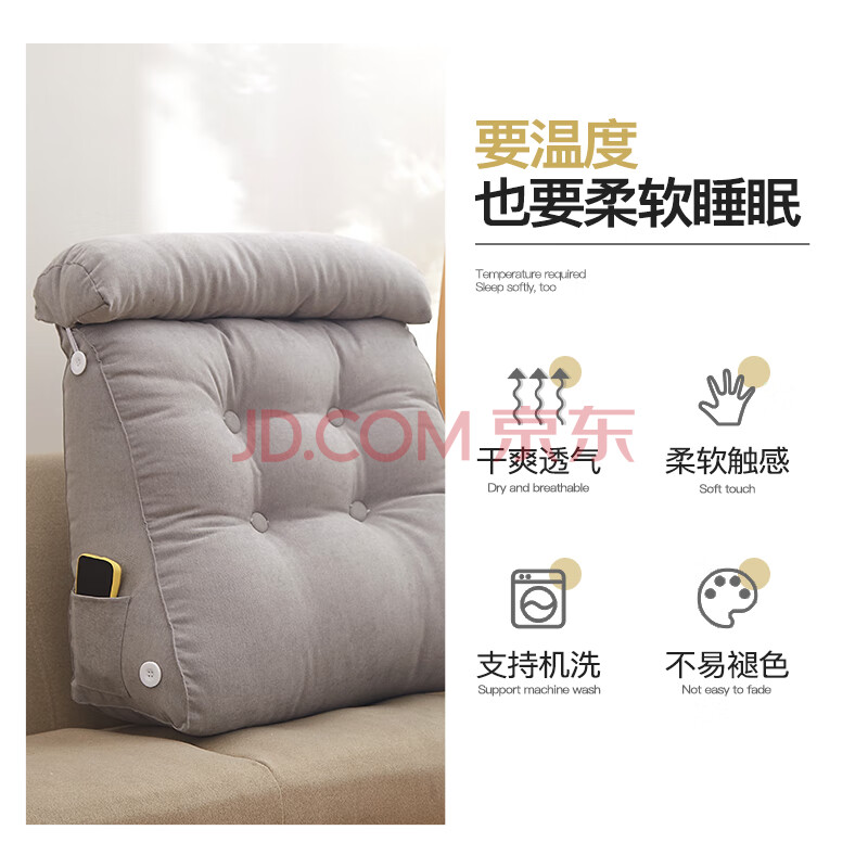 商品相册:恒源祥床头三角靠垫加大汽车靠枕可拆洗沙发腰靠办公室护腰垫55*25*50第