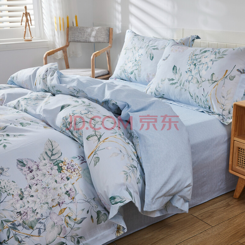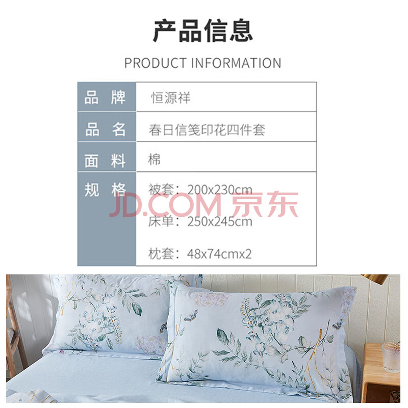 商品相册:恒源祥全棉四件套100%纯棉21支竹节棉床单被套罩床单款套件四季床上用品 春日信笺200*230cm第
