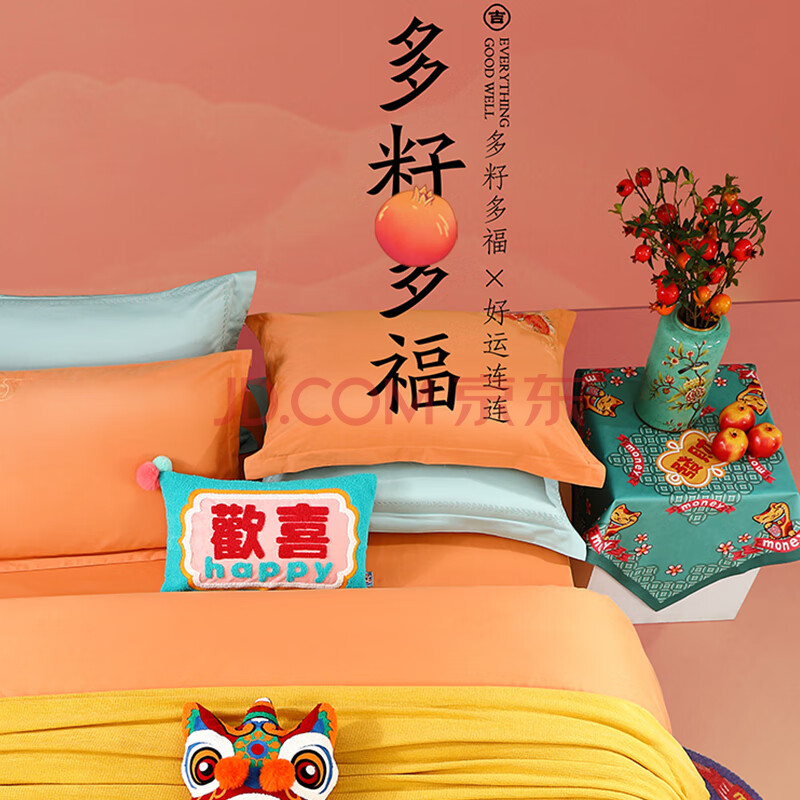 商品相册:富安娜 纯棉四件套 60s长绒棉床单被套 加厚磨毛套件单双人203*229cm第